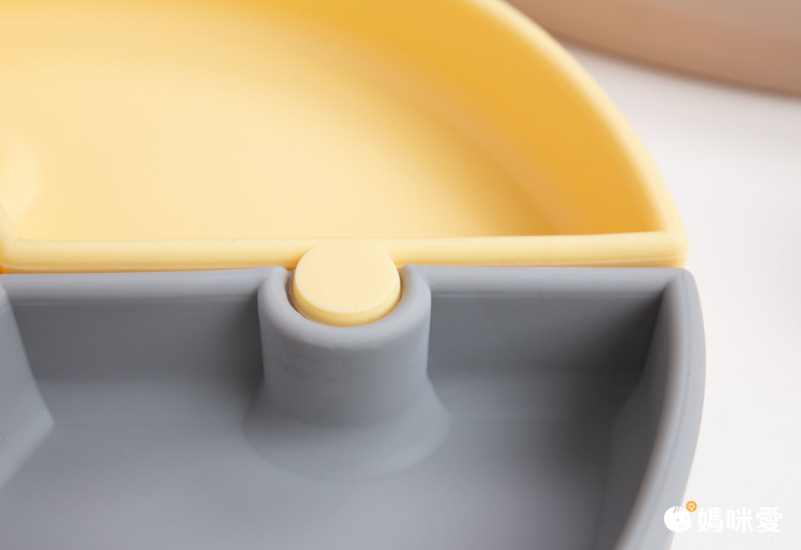 吸盤碗有附防漏蓋,蓋子是小熊耳朵的設計,超可愛!也方便媽咪打開蓋子,需要一些力氣,所以不怕小孩自己打開打翻食物