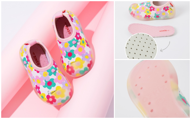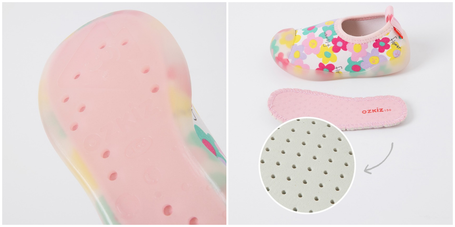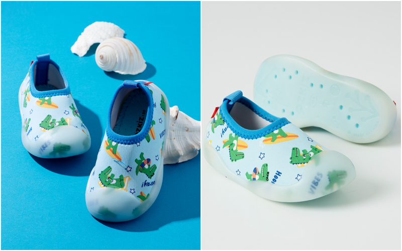 除了美美的泳衣外,一雙輕量防滑的沙灘鞋也是必備的!去海邊玩,最怕沙灘上有尖銳物劃傷寶貝的小腳,也怕沙子過於滾燙,會讓孩子無法盡情玩耍;去游泳池,最怕地板濕濕的讓寶貝滑倒 (。ŏ_ŏ) 只要穿上沙灘鞋,就能避免這些隱形殺手,在爸媽看不到的地方也好好保護孩子!