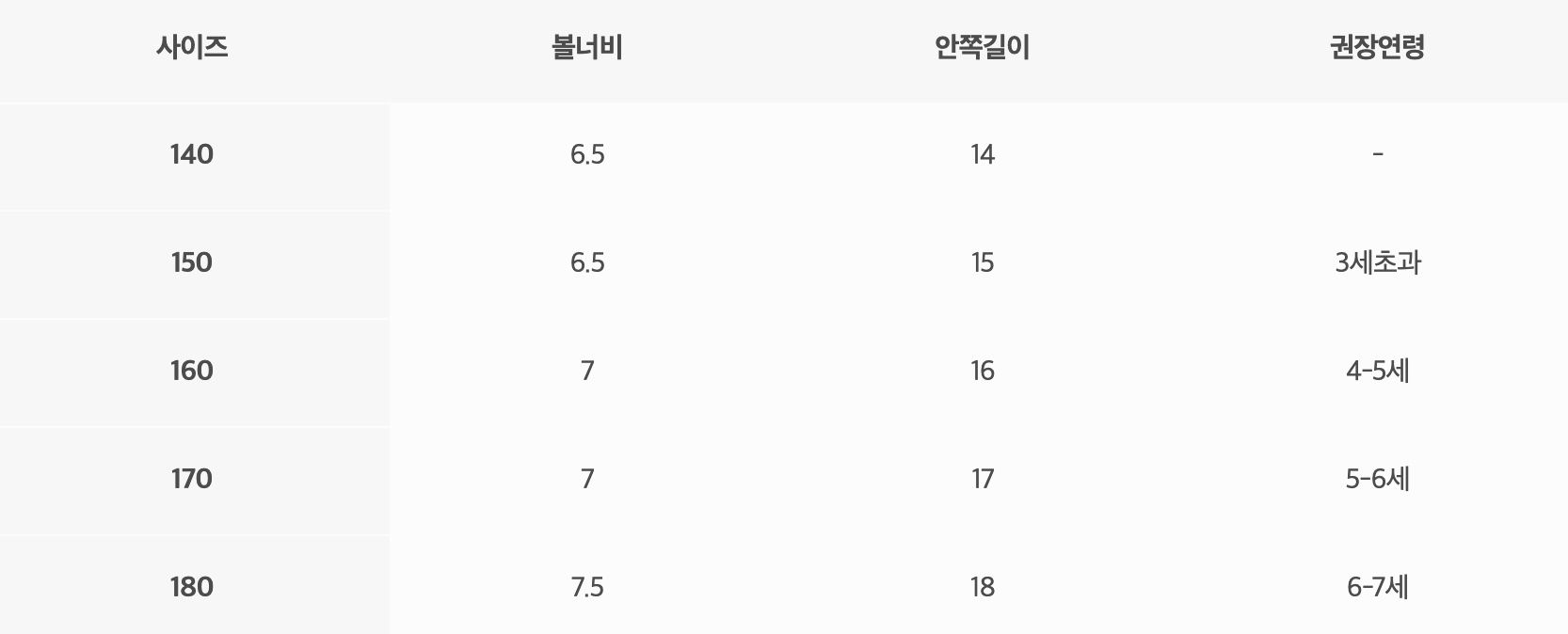 下面是尺寸表,建議胖腳寶寶可以買大一號喔!