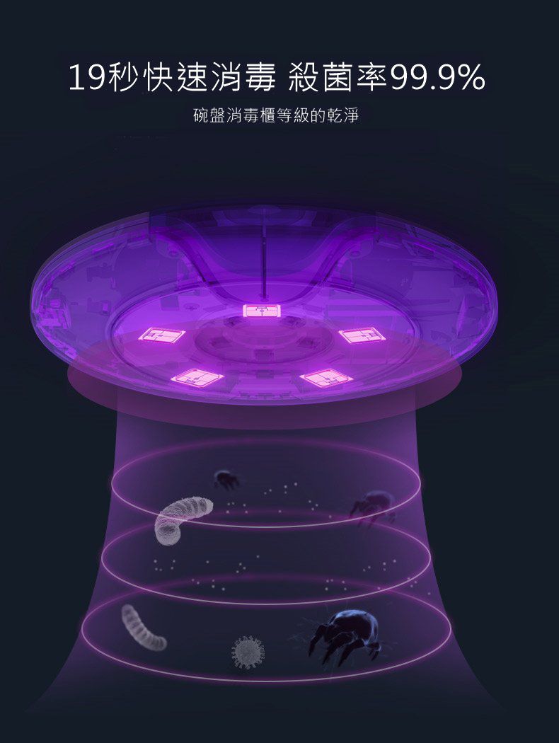 內建的紫外線消毒燈,只要59秒就能完成殺菌囉!