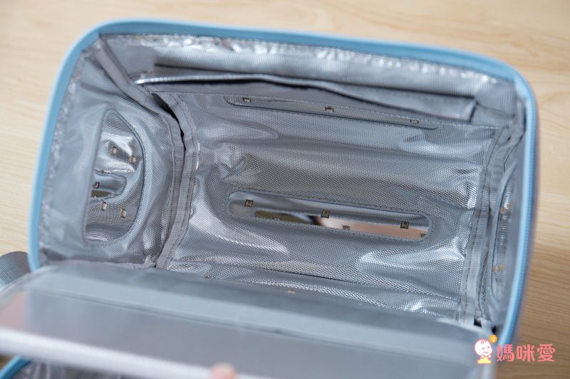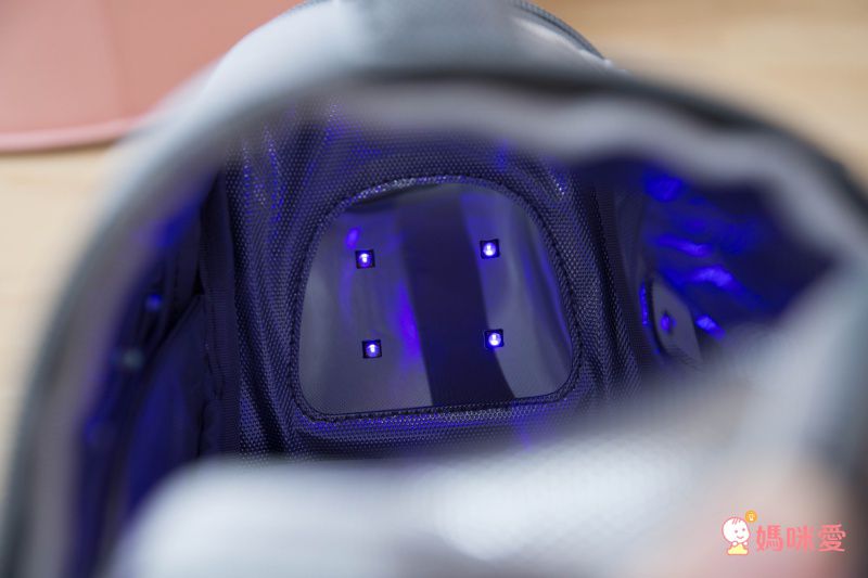 打開包包可以看到LED紫外線燈,內裡使用的是反光材質,能讓消毒效率更加提升!