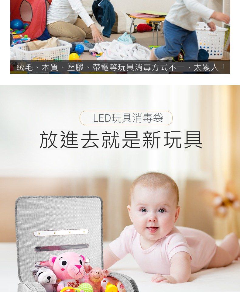 有些玩具不能直接用水清洗,但寶貝每天都會接觸的東西,怎能不好好消毒呢?像是絨毛玩偶、木製玩具等就很適合用玩具消毒袋消毒,不用水也可以幫玩具們「洗澡」XD
