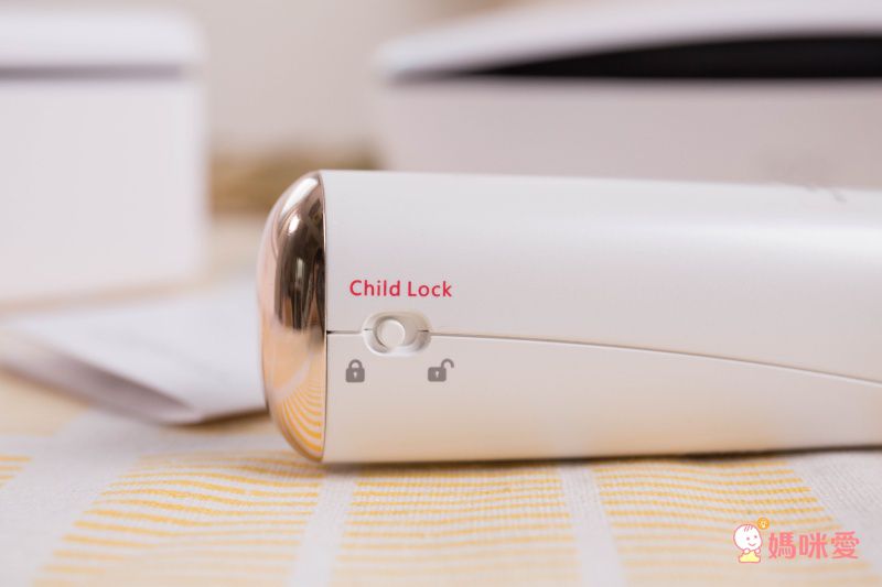 還有安全鎖可以防止孩子誤觸使用直接照射眼睛或發生其他意外