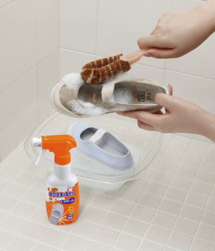 在洗之前先噴上布鞋洗滌劑,靜置一下下再開始刷洗,就能夠比較容易髒污洗下,還鞋子清白囉~