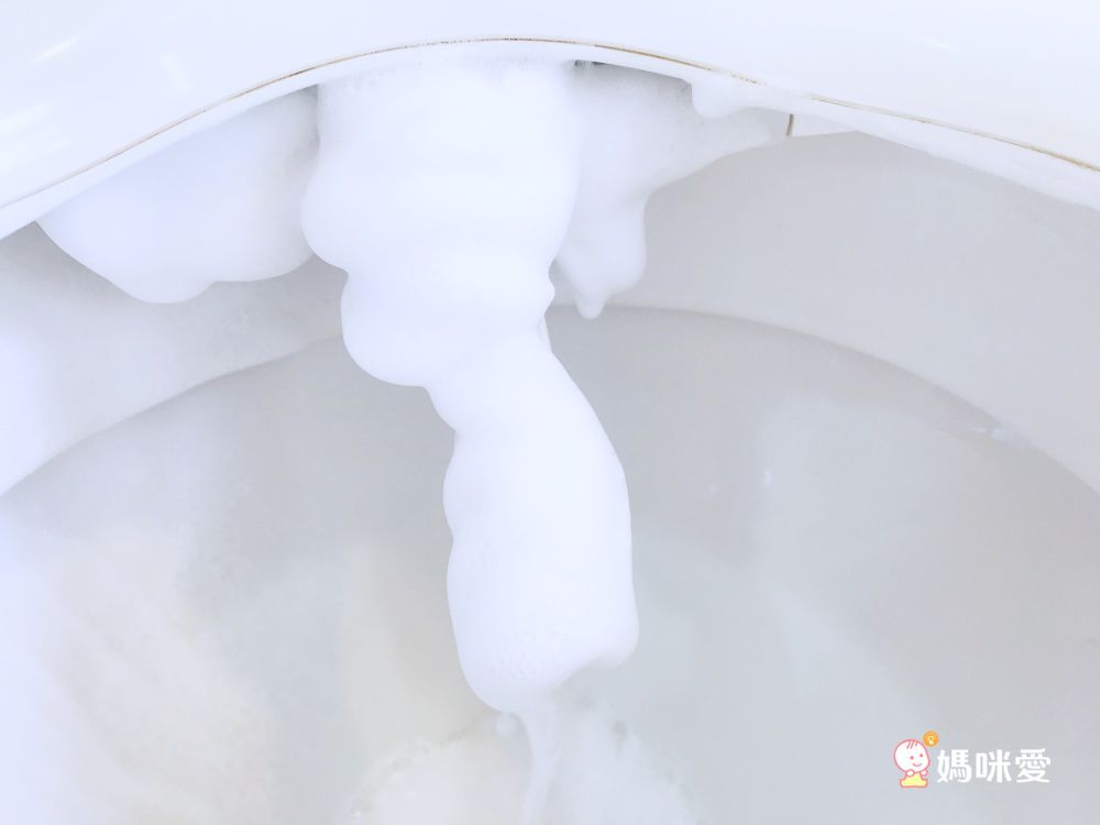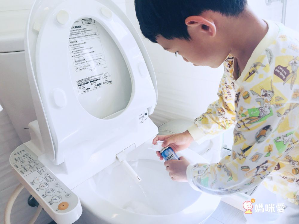 先將馬桶噴嘴召喚出來,再把清潔劑對準噴上去,就可以完整整根包覆泡沫清潔劑,操作簡單連小朋友都會使用呢~