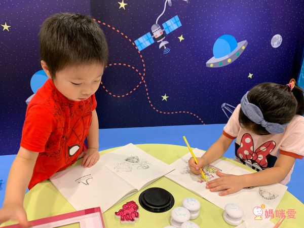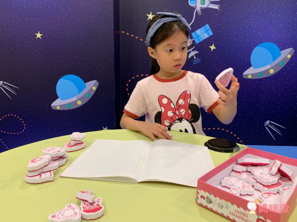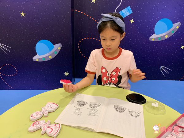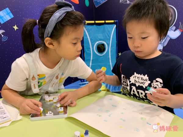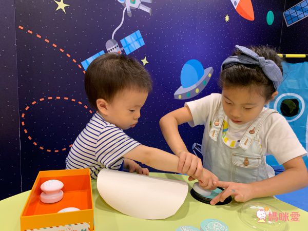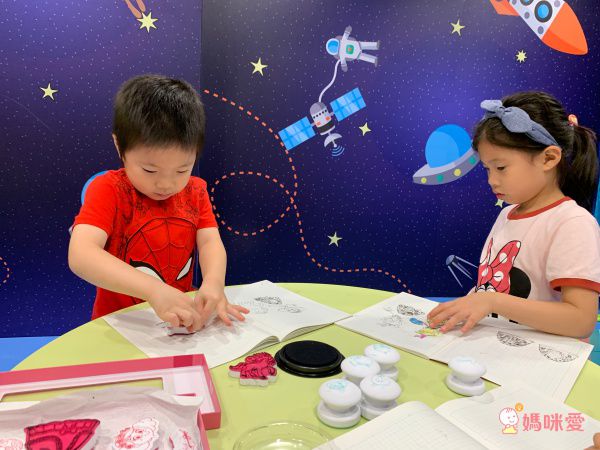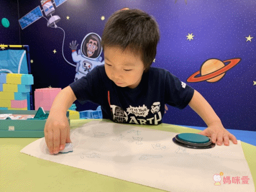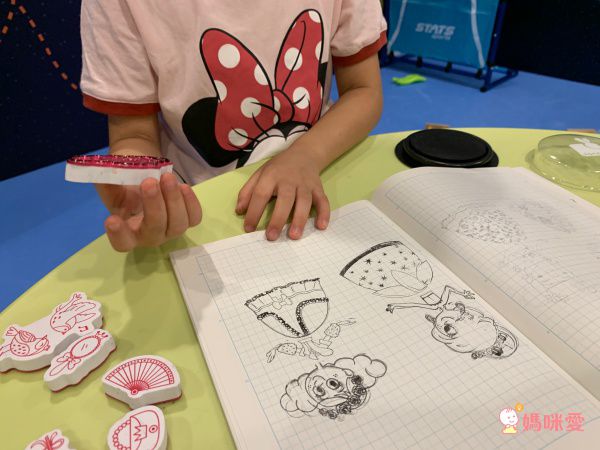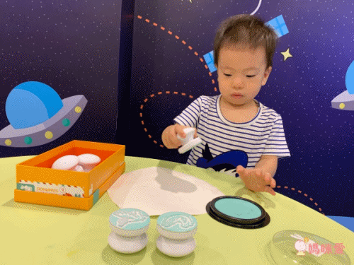 承承經過姊姊的指導,輕鬆上手,自己蓋印,馬上就看到完整的圖案,超有成就感的👏👏!