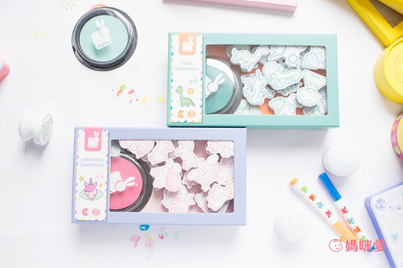 再來是比較小的印章,適合年紀更大一點的孩子發揮創意!先來介紹 可愛恐龍、獨角獸甜心款式吧!
