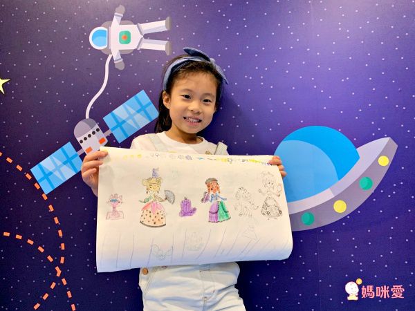 姊姊完成作品之後,開心的拿著畫作合照了一張,這幅畫裡面結合了很多有趣的故事呢!