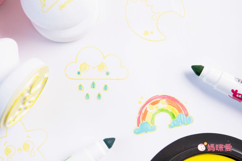 而且印章刻面的大好處就是~寶貝蓋完之後,可以拿出彩色筆、色鉛筆玩著色遊戲!🌟買一款印章擁有多種玩法~CP值真的超高啊!