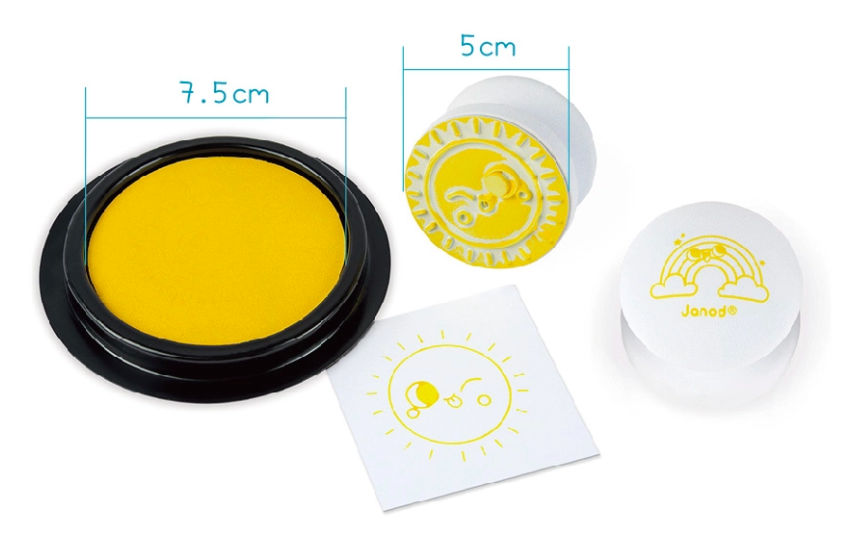 印台直徑7.5公分,印章直徑5公分,這樣的尺寸連兩歲的幼兒使用起來也很恰當喔!