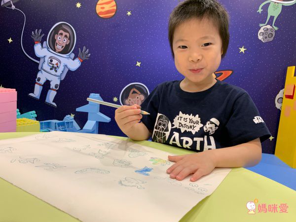 蓋完之後,Ethan拿出色鉛筆,開心的幫剛剛誕生的恐龍們上色,盡情的編造自己的侏羅紀公園!