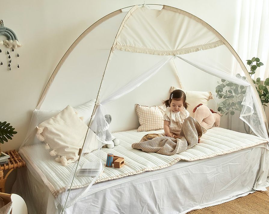 夏天到啦,得開始想辦法抵擋惱人的蚊蟲攻擊> < 這次鼎鼎大名的 韓國質感雜貨 Bebedeco 就推出了超可愛的帳篷蚊帳!看起來像是一頂帳篷,營造出秘密基地的溫馨感;造型有孩子最愛的貓貓、熊熊,還有媽咪喜歡的流蘇,雖然是蚊帳但完全不醜,反而給寶貝一個美美的小天地呢!最棒的是只要一拉就快速展開,不用另外釘釘子掛東掛西,安裝超簡單!也能收得扁扁的,完全不佔空間~還有加密紗靜音磁條防蚊門簾,讓家裡環境變得更舒適、替每天的生活品質大加分哦~