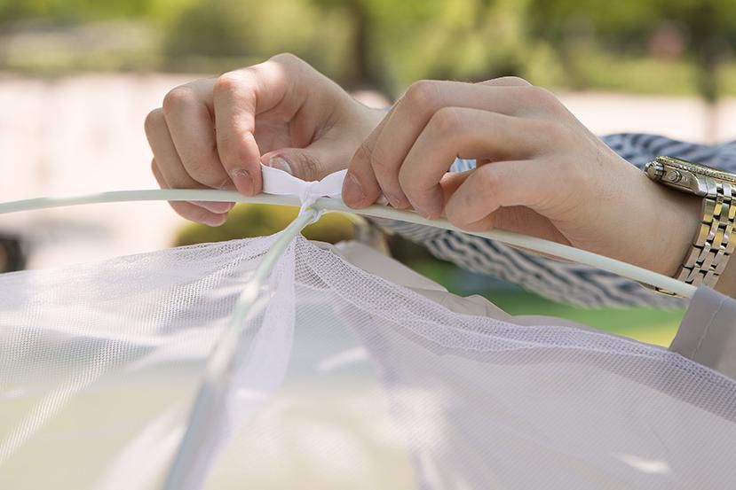 蚊帳實際安裝跟收合的操作,請參考下面的影片~一拉、二凹、三綁,快速收納不佔空間!
