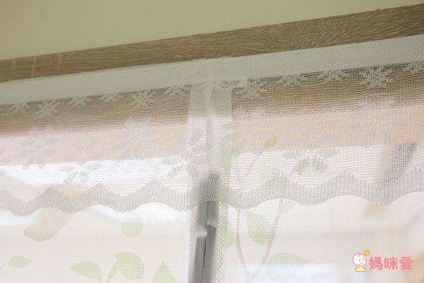 最後再把附的裝飾半簾,用雙面膠對齊頂端貼上就好囉~看起來更加浪漫!