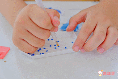 然後用夾子夾取,將對應顏色的珠子放入拼盤之中
