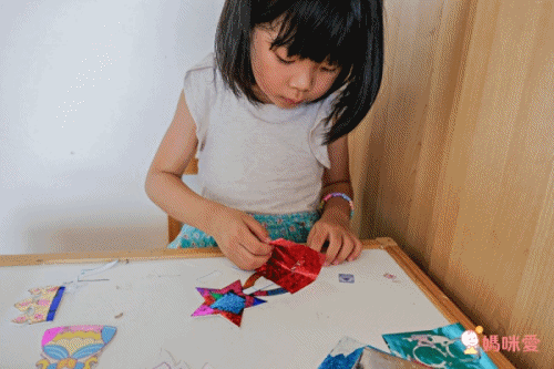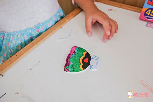有時候孩子會問要用什麼顏色,我都會鼓勵姐妹倆自由創作,沒有一定的配色,貼上喜歡的閃亮亮紙,慢慢的會發現孩子們在手作過程中都很有自已的配色創作力!我蠻喜歡讓孩子們自由發揮趣味中創作出獨一無二的作品