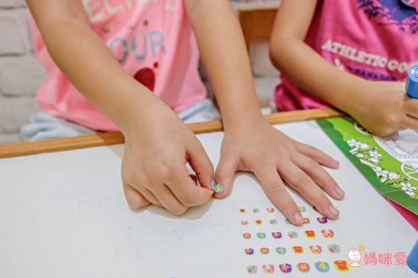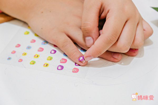 小小指甲貼遊戲組就能大大滿足孩子的玩樂,米姐還會幫妹妹一起貼