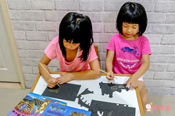 用刮棒進行刮畫可以訓練孩子手部的精細動作,還有線條美感的培養