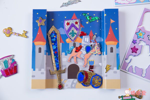 AMOS的閃亮DIY刮貼畫有公主馬車和恐龍騎士兩款,男孩女孩都適合玩,簡單操作 一玩就會,完全不需要到剪刀膠水,即貼即黏,連小小孩都可輕易上手!