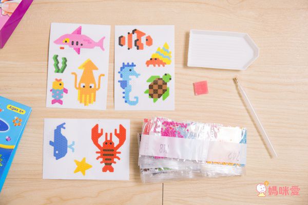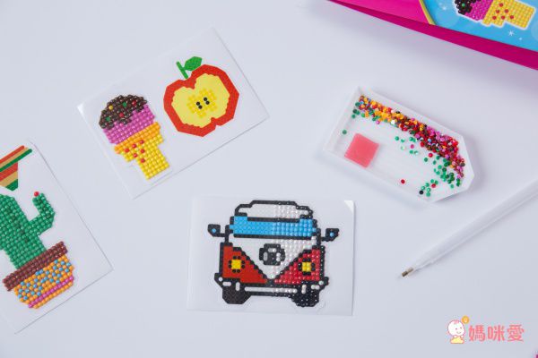 適合年紀比較大的孩子玩,從拼鑽DIY中訓練手眼協調和培養耐心,自己動手完成的作品,是貼紙可貼在喜歡的物品上