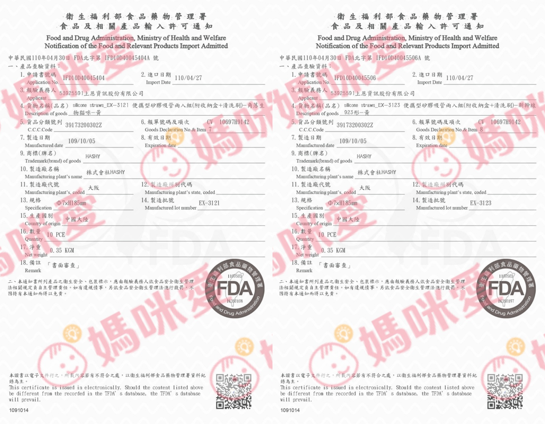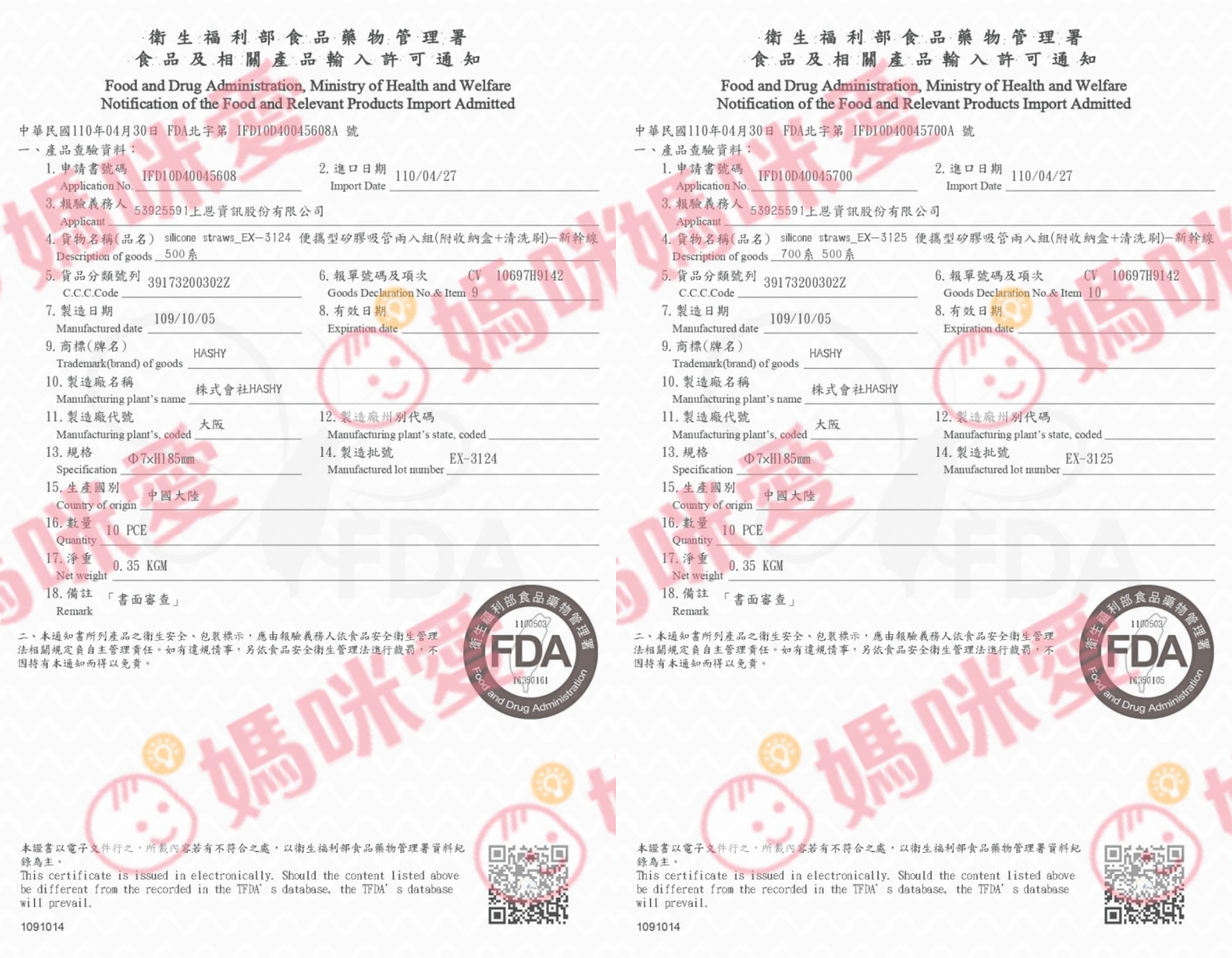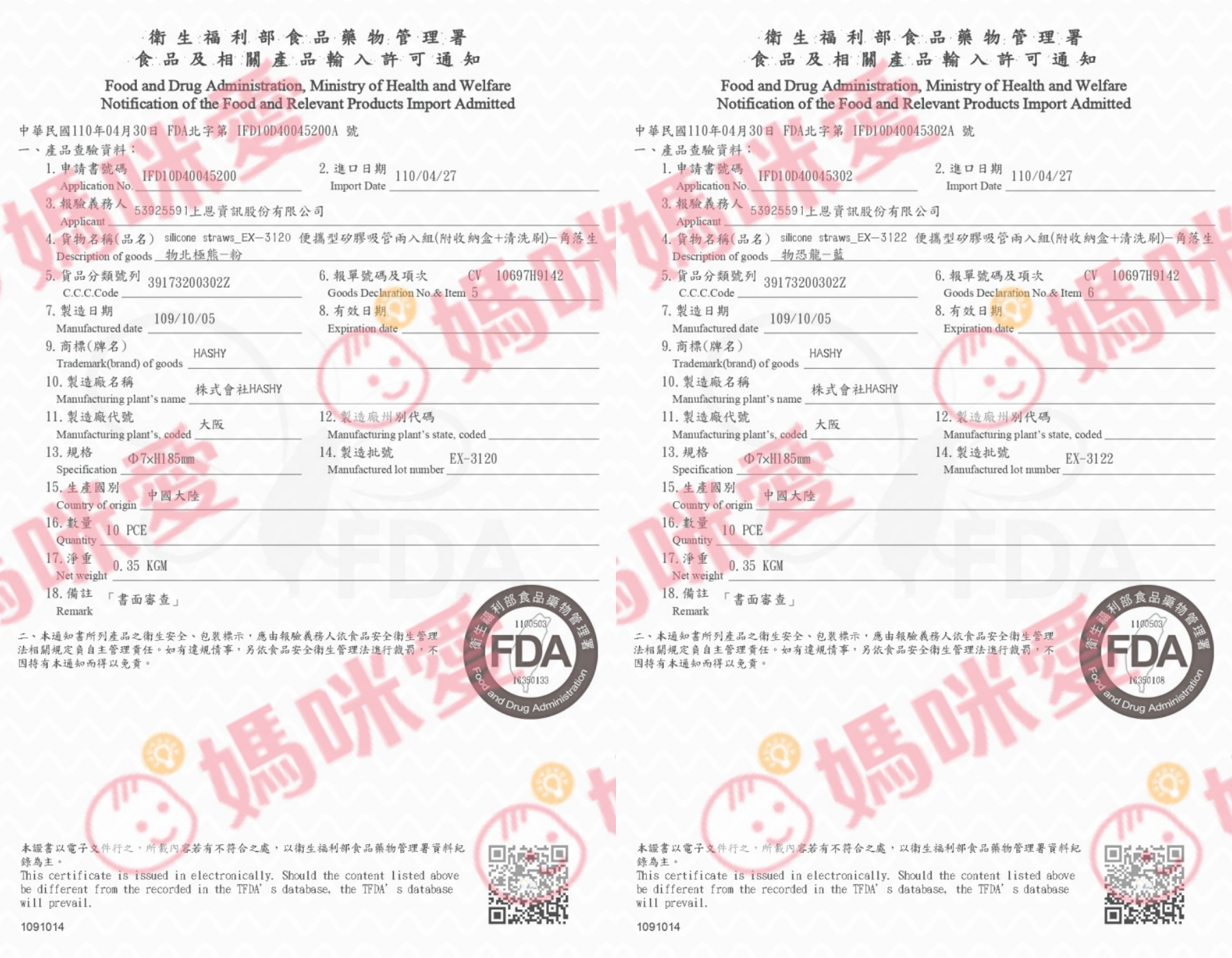 附上FDA食品藥物管理署的合格證書給媽咪參考~