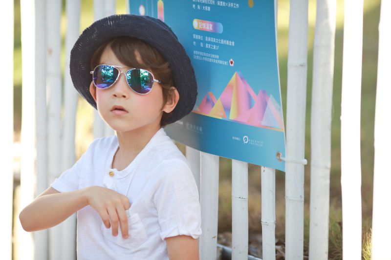 弟弟配戴的則是韓系時尚款,復古圓墨鏡,大大的偏紅鏡片配上優雅貴氣的金框,這樣大人感的款式可帥亦可萌,弟弟戴起來古錐古錐的,尤其一戴低就很搞笑哈哈!