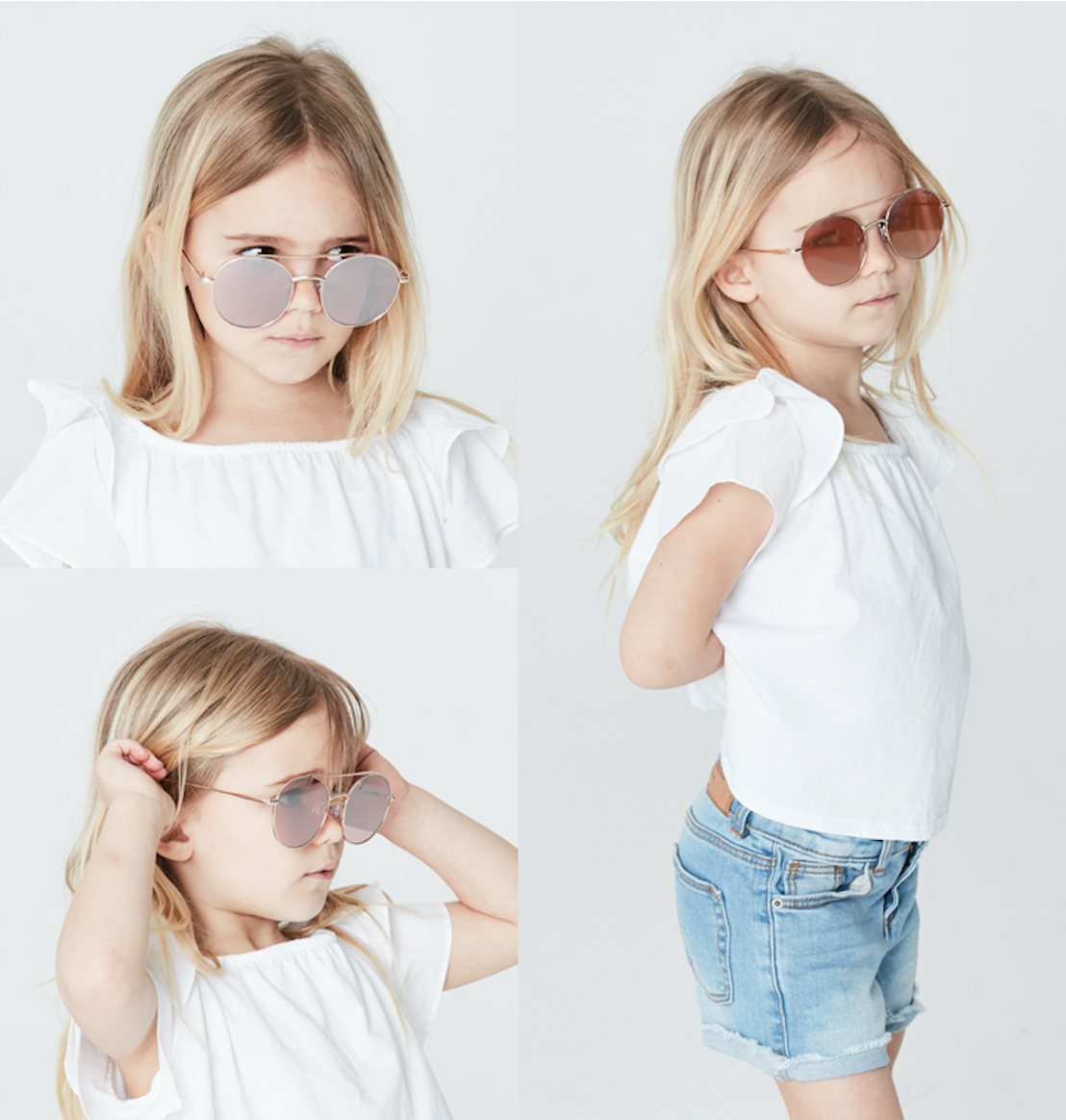 接下來是比較大的寶貝可以戴的款式,除了經典款之外,Idol EYES有非常多漂亮時髦的款式,完全不輸大人款的好看!讓寶貝選一副他最愛的太陽眼鏡,也比較戴得住,自然就能起到保護眼睛的效果囉!
