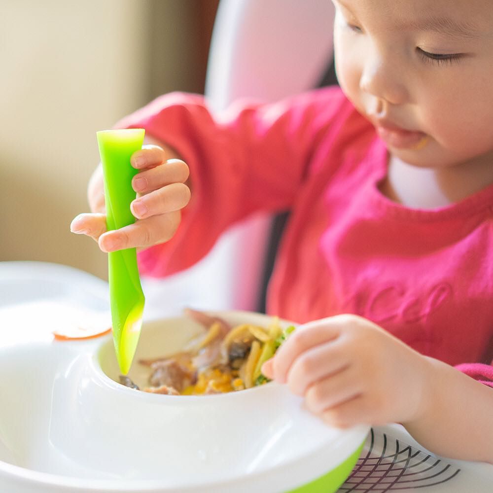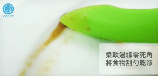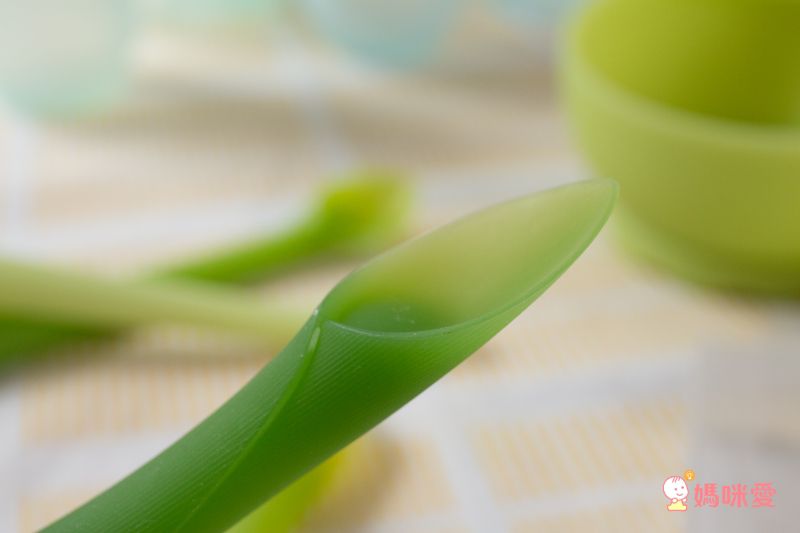 矽膠湯匙的優點,就是彈性非常好!可以從任何角度挖取食物,吃到剩下碗底一點點的時候,照樣能刮得乾乾淨淨,不浪費任何一口媽咪辛苦準備的副食品。