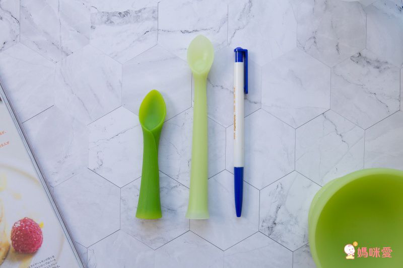 有兩種長度設計,長的湯匙相當於一支筆的長度,爸媽用拿筆握姿餵寶寶吃副食品很輕鬆。
