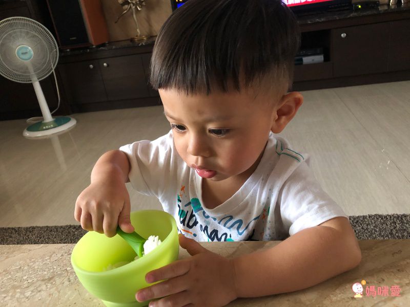 握把的粗細也很適合孩子現在手掌大小,好上的湯匙是讓孩子學習自主吃飯的重要因素之一!
