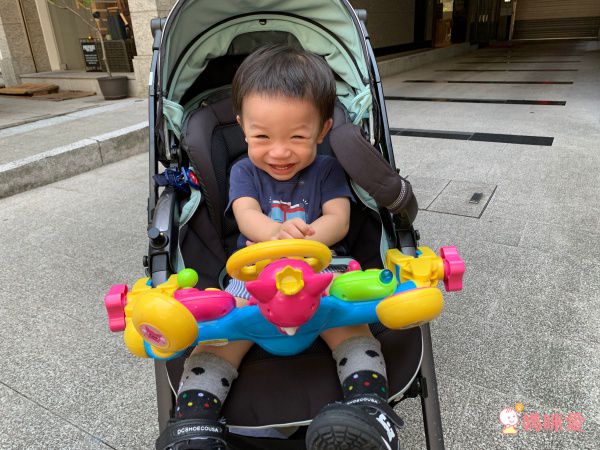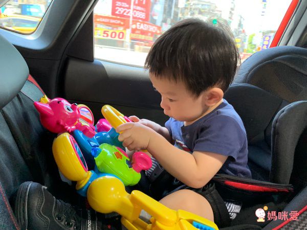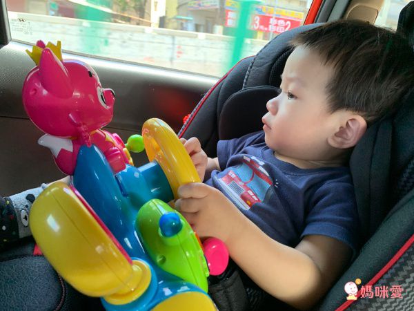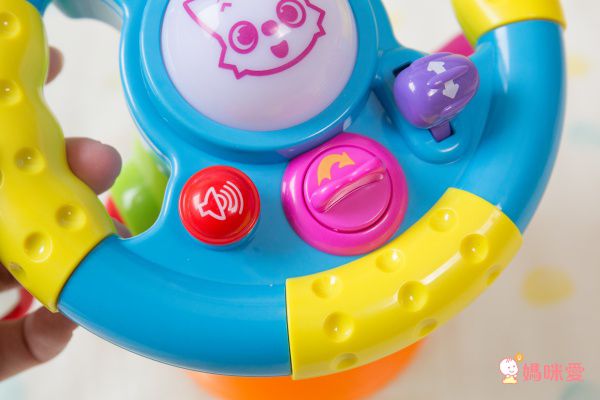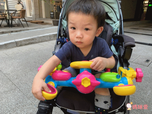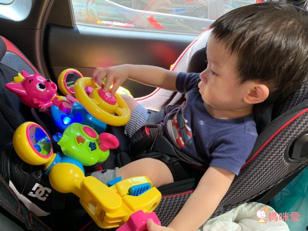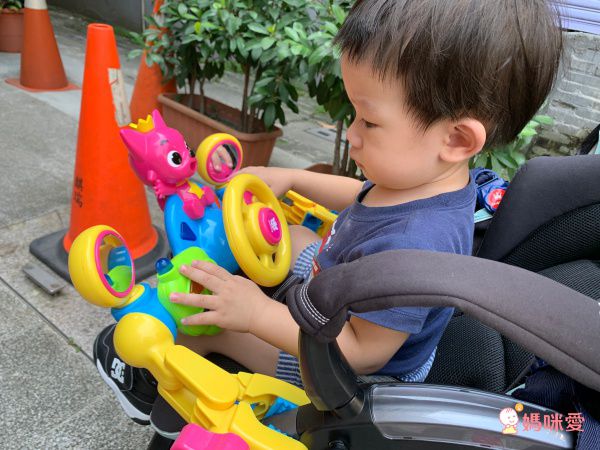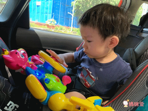 方向盤上的趣味聲光機關,也讓他不停的玩,讓媽媽可以暫時休息一下啊~