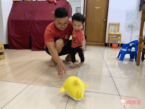 開關在鯊魚寶寶的底部唷!輪子會不停的變換方向,能夠引起孩子跟著爬的興趣!
