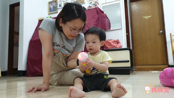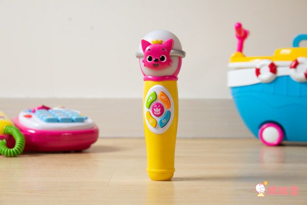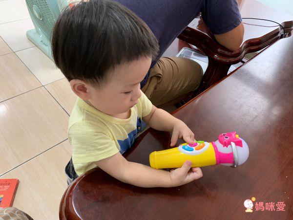 拿著大大的麥克風,可以鼓勵比較害羞的寶貝勇敢地大聲唱