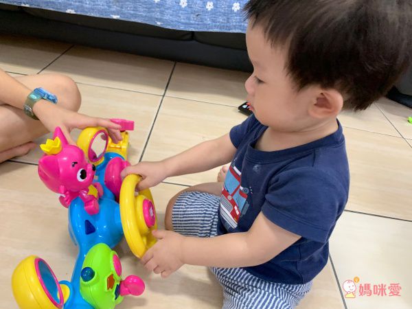 內建的歌謠當然也是包含了能聲控壯壯跳舞的韓文版鯊魚寶寶主題曲!因為爸爸開車的實況,剛好緊抓方向盤玩的壯壯,也就好像真的自己在開車般的投入!