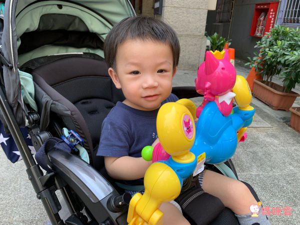 更是抓著睡著了!看著他如此乖乖地坐在推車以及汽座上,媽媽又讚嘆了!就這樣寶寶媽媽就這樣輕鬆愉快的度過每一天!感謝鯊魚寶寶玩具的努力!