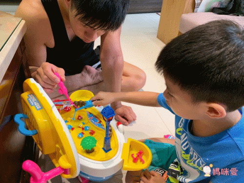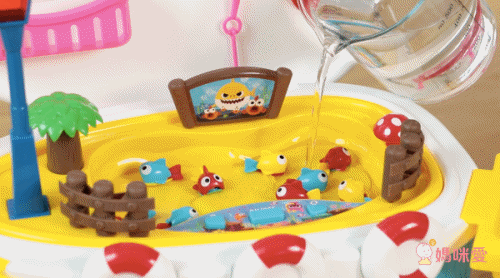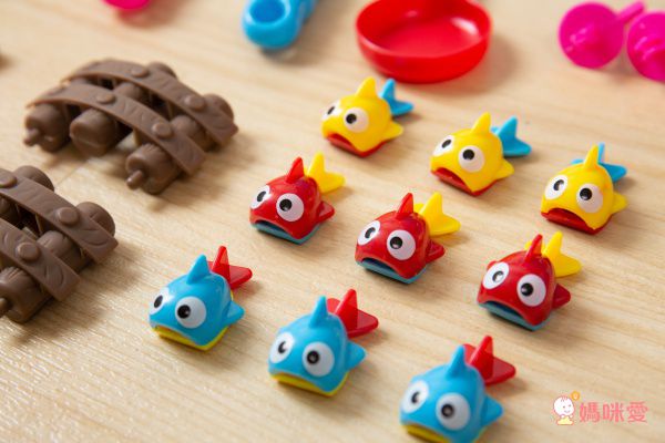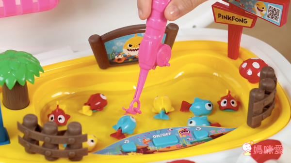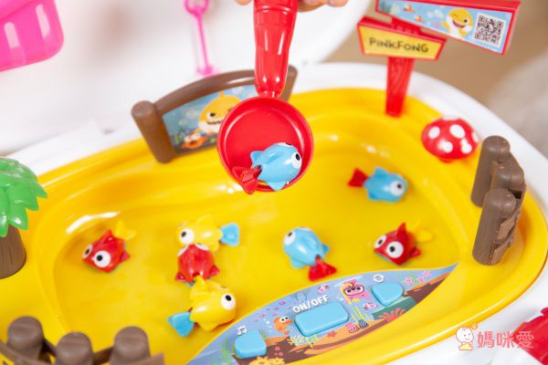 按下開關後小於開始轉動,孩子要很專心才能將小魚釣起來,可以培養孩子的專注力和小手肌肉!