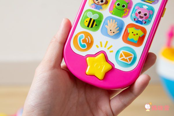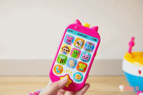 手機上面有不同動物、物件圖案的按鈕,每一個按鈕都是一首好聽的歌曲唷!