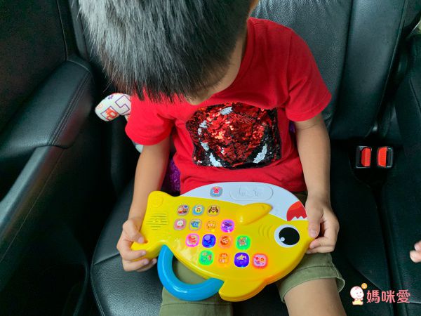外出時把鯊魚音樂板放在後座,哥哥專心的聽音樂、打節拍,就不會一直吵、一直盧著要下車了!