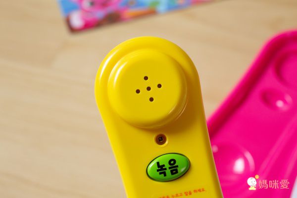 最特別的是話筒可以錄音唷!按下上面的綠色按鍵,可以錄下短短的幾秒鐘,孩子玩起來就好像真的有人在和自己對話(其實就是自己啦XD)