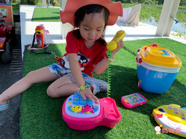 小孩子看到大人講電話,總是覺得很好奇,這什麼魔法箱子可以聽到來自很遠的聲音呀!因此入手一款電話玩具讓他玩玩囉!