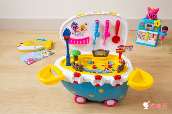 【韓國超人氣Baby Shark ✖ 碰碰狐】系列相當多樣,從小小孩玩的絨毛玩具到大孩子愛的家家家玩具都有唷!本團介紹的是適合3歲左右的寶貝玩的!小月齡的玩具之後會再作介紹~有韓國超夯的釣魚組、卡拉oK、電話和麥克風唷!