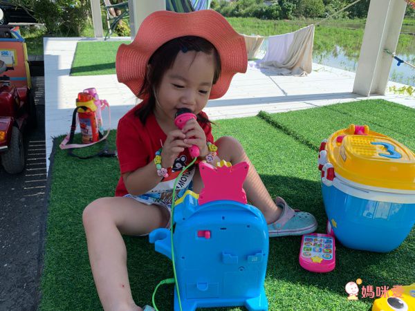 剛好出來旅遊渡假的時候,媽咪我也一起把這個玩具帶出來,讓寶貝盡情在外面歌唱,一邊唱歌、一邊欣賞田園風光~~如果有明星夢的爸媽們,這台絕對會是練歌的好玩具哈哈~ 爸媽們也不用擔心寶貝出來玩無聊囉! 不唱歌的話也可以玩投幣遊戲玩得很開心~