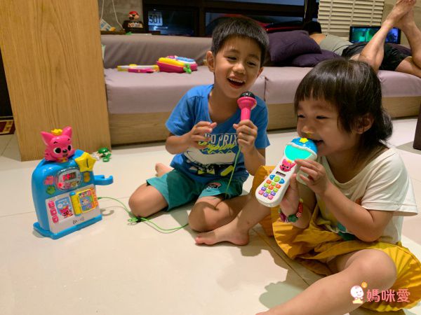 重點是這個玩具還會幫寶貝們打分數喔!告訴你你唱歌得了幾分,哥哥現在每天都吵著要我聽他唱歌,然後很得意地給我看他高分的表現,為他拍手鼓掌~~