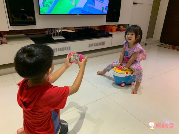 不用擔心寶貝們會想要跟爸爸媽媽搶手機拍照,看兩個寶貝用玩具上面可愛的快門鍵,互相拍照的樣子好有趣喔~