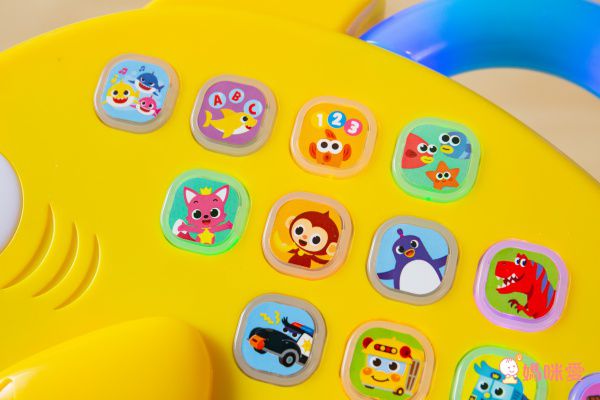 板子上的每個按鍵都是一首歌,像第一首就是大家耳熟能詳的Baby Shark主題曲、第二首是ABC之歌!邊玩邊學習英文歌曲!