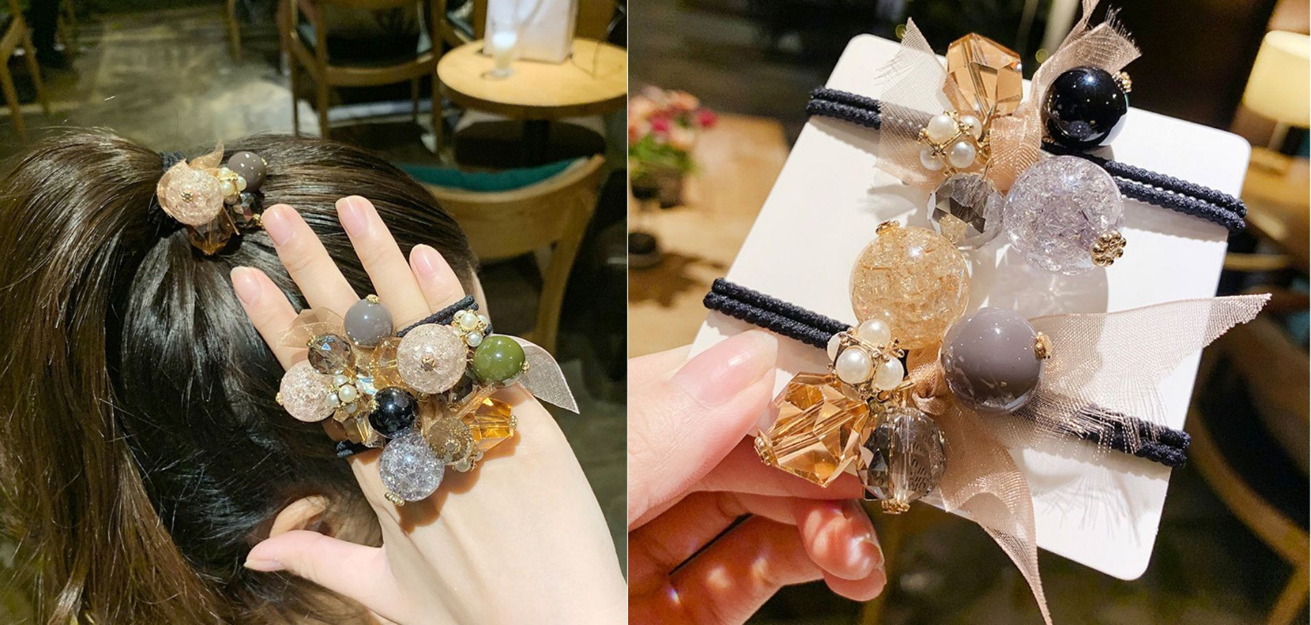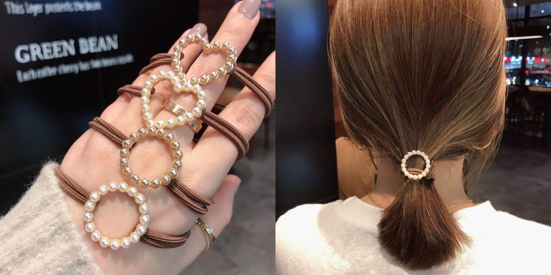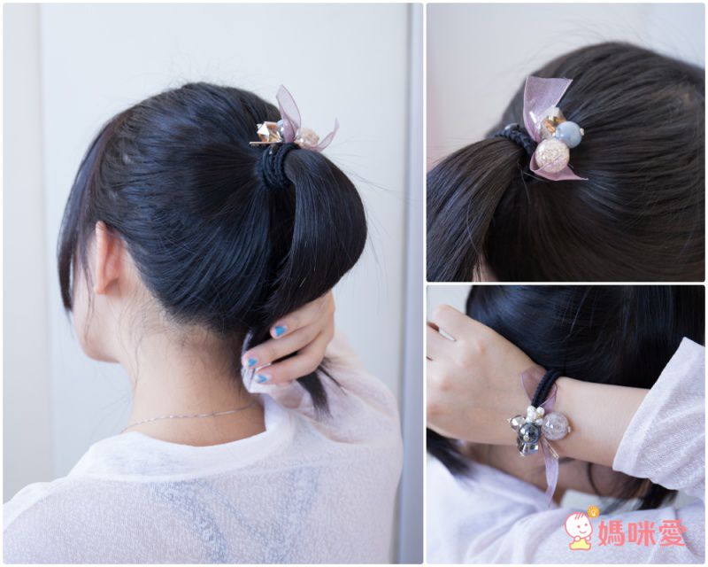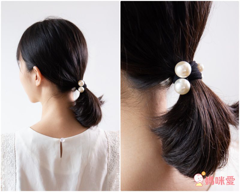大小珍珠款則可以綁可愛的丸子頭、綁馬尾,或單純把長髮紮成一束垂在肩側都很美,不想綁時還可以直接當手環唷