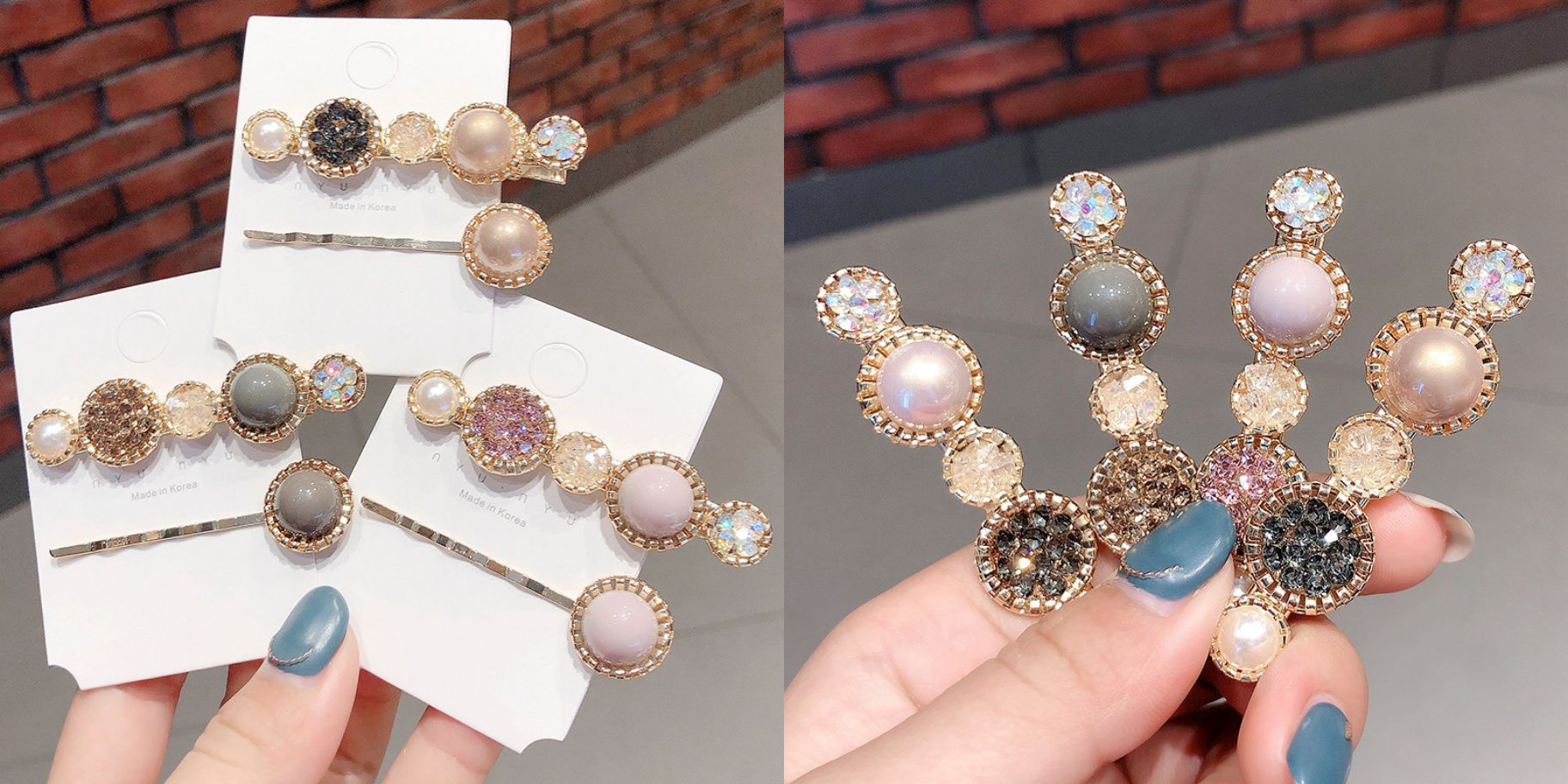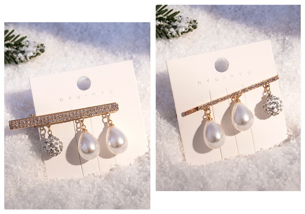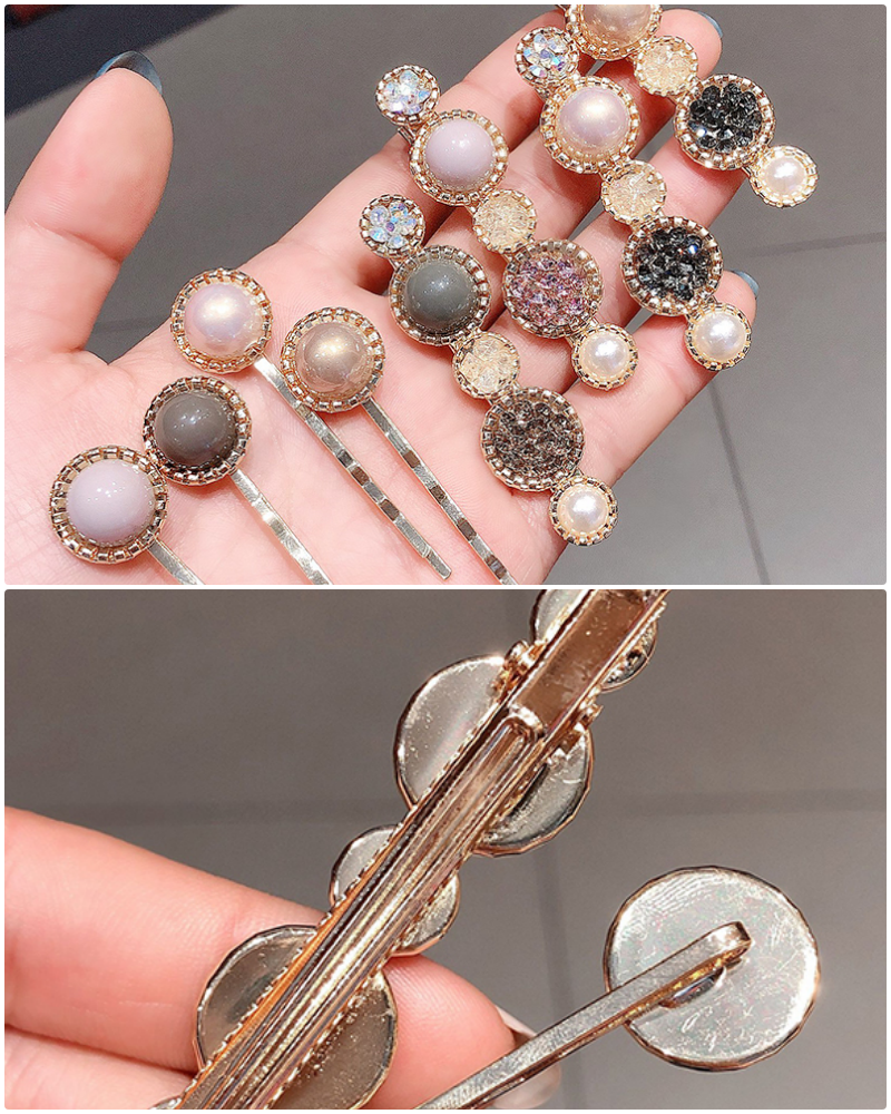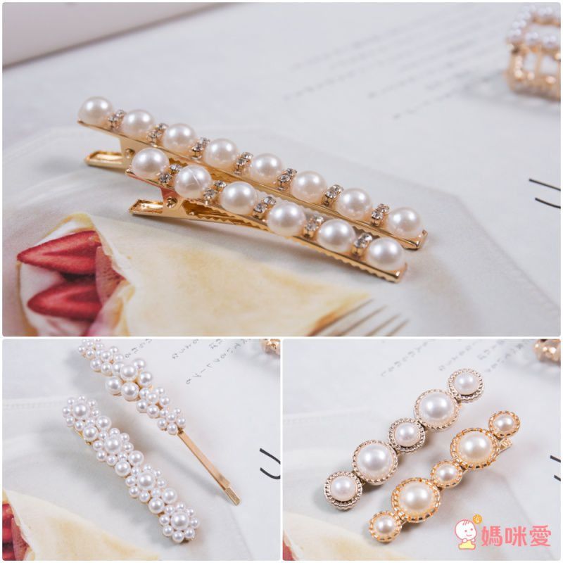 混色珍珠搭上閃亮亮的碎晶無論從哪個角度都無懈可擊,波浪一字夾配上鴨嘴夾讓你隨心所欲造型