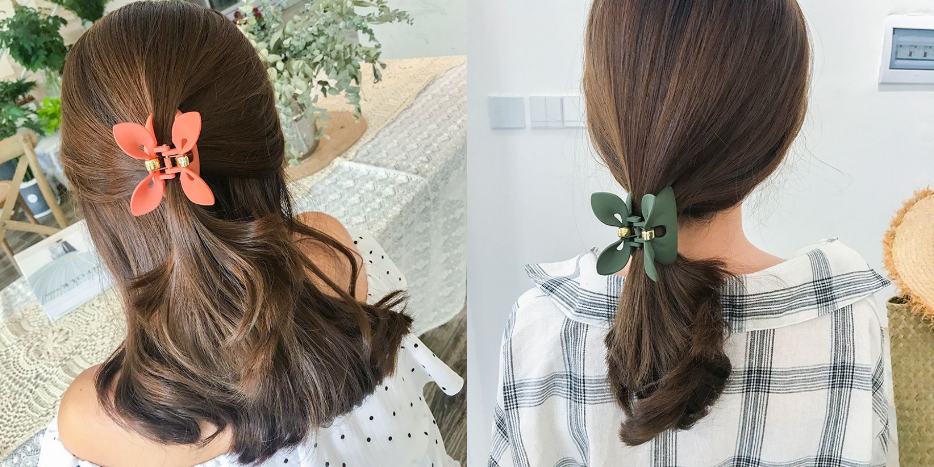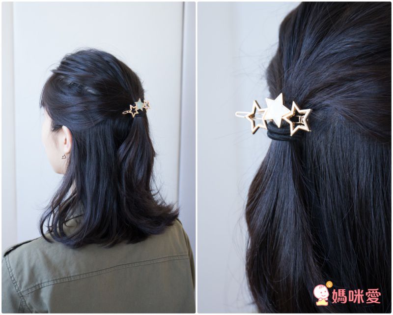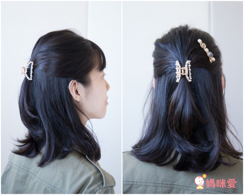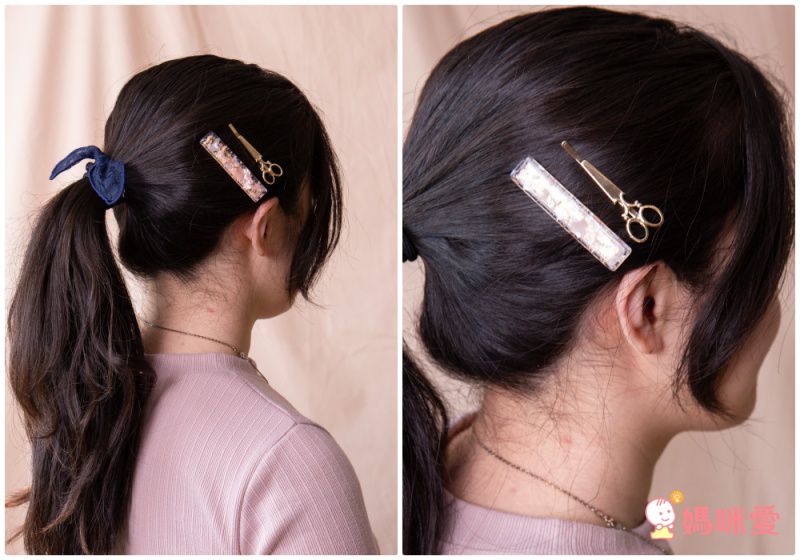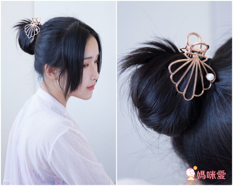 貝殼夾則可以綁馬尾或紮成丸子後直接夾上去,也別有一番風味