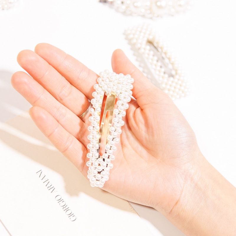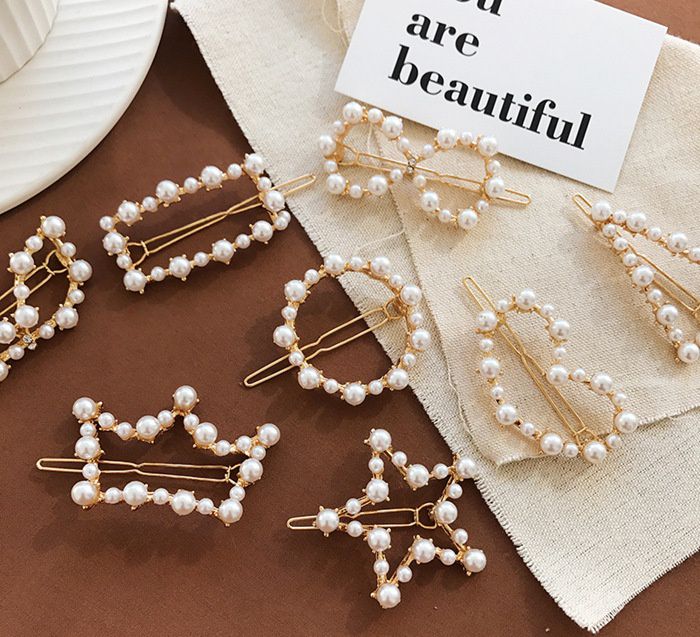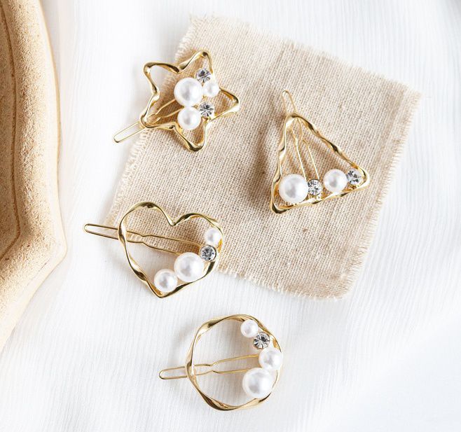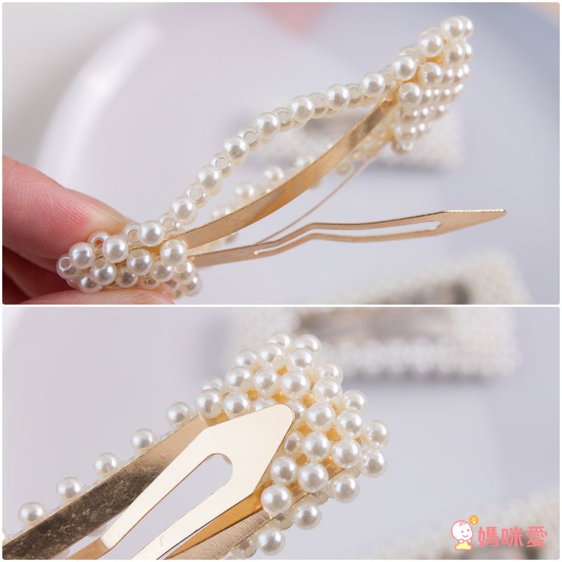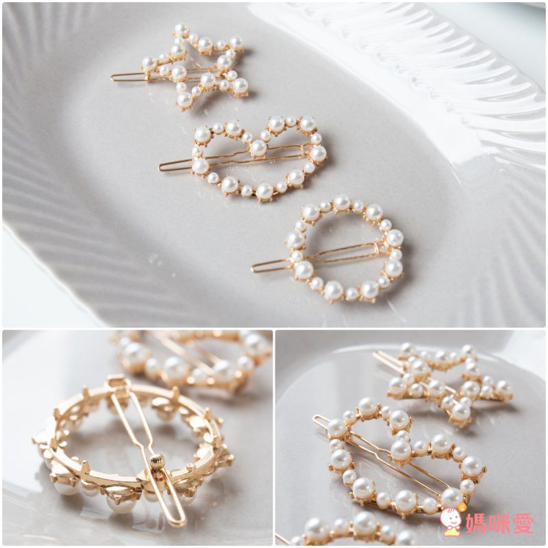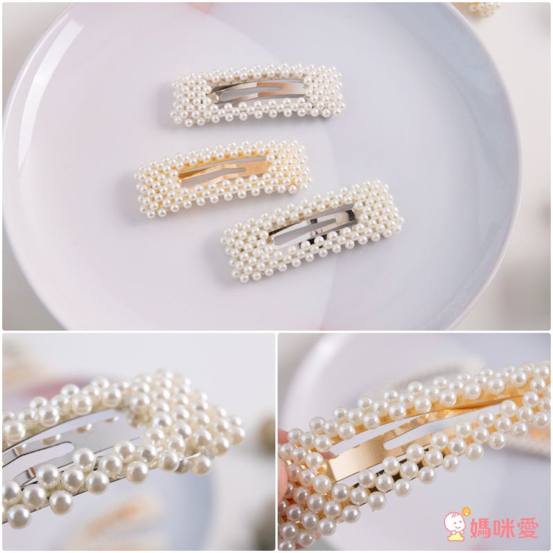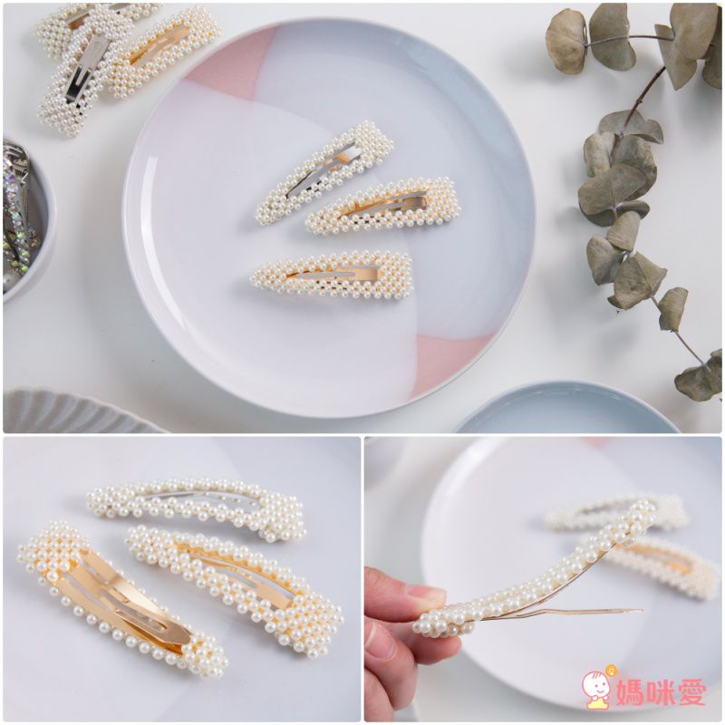 瑩瑩潤潤的白色小珍珠鑲滿了金銀色的金屬髮夾,光拿著都超級漂亮的呀!