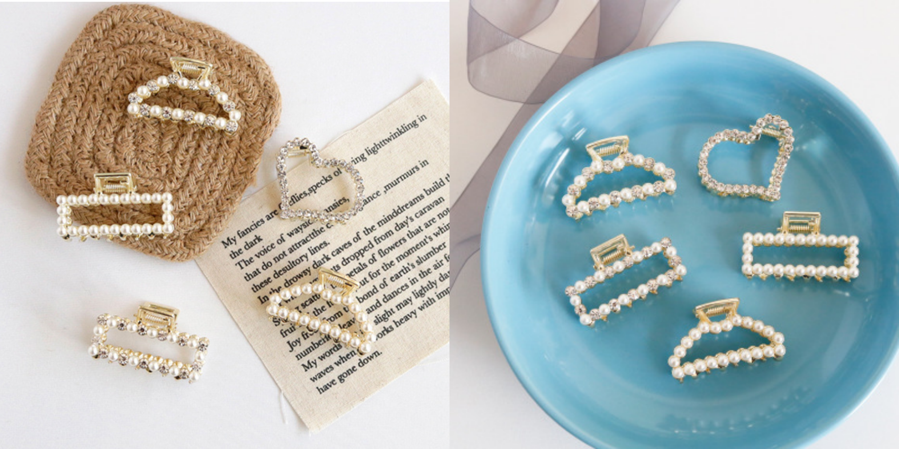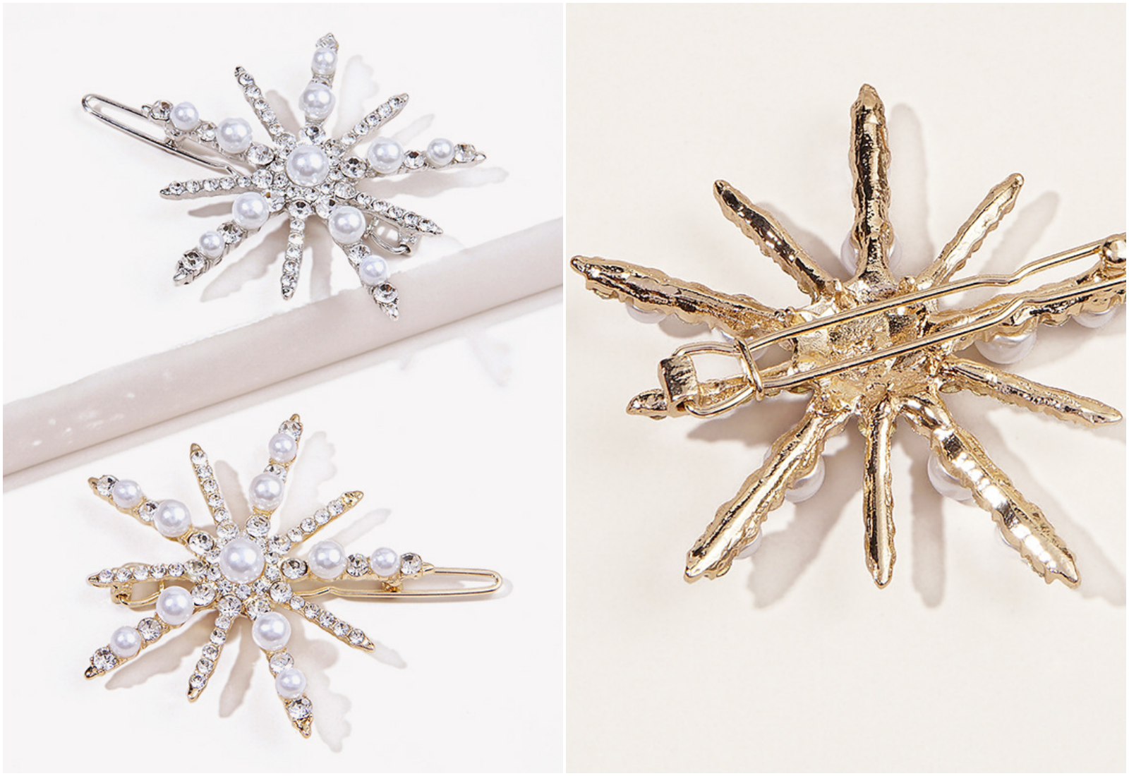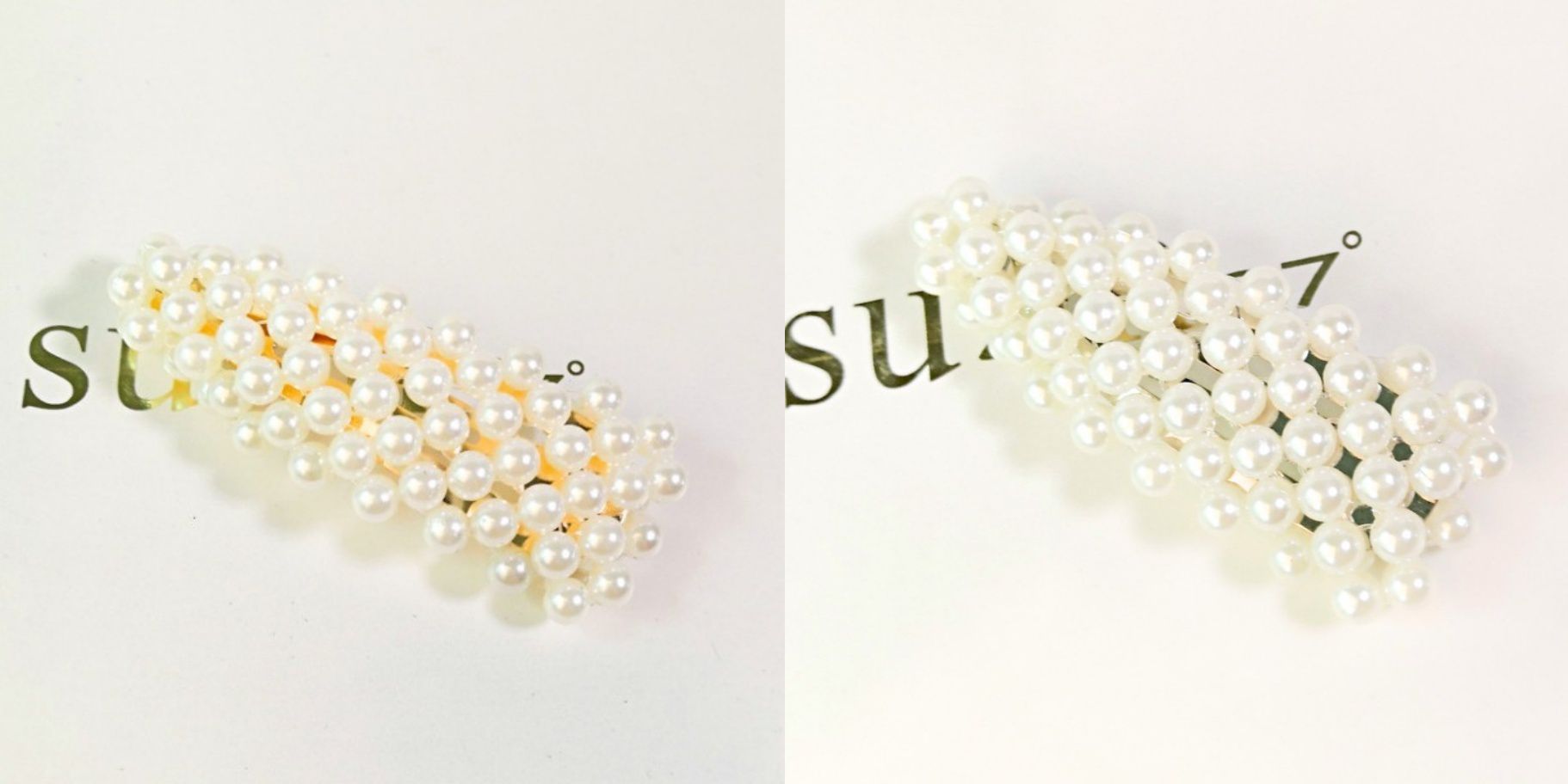 瑩瑩潤潤的白色小珍珠鑲滿了金銀色的金屬髮夾,光拿著都超級漂亮的呀!